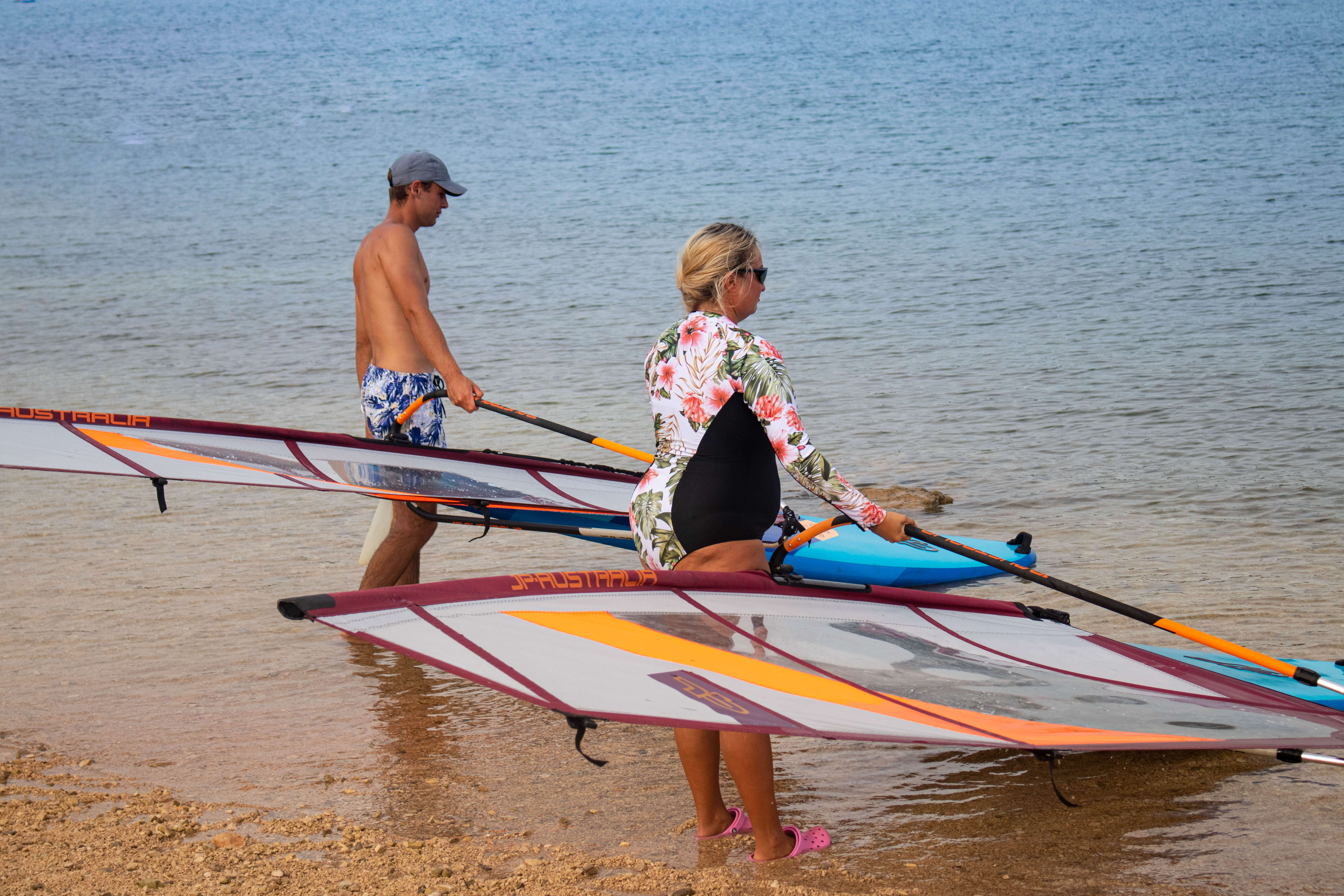 The aquapark is located next to our windsurfing center at Črnikovica beach and offers various water activities such as slides, inflatable obstacles, and interactive games, perfect for children of all ages. Safety is our priority, with experienced lifeguards ensuring a safe experience for all visitors. No reservation is required, tickets can be purchased on the beach – come and enjoy the fun by the sea. It’s the perfect spot for a family day at the beach!